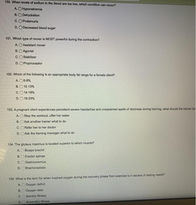 Solved: 150. When Levels Of Sodium In The Blood Are Too Lo... | Chegg.com