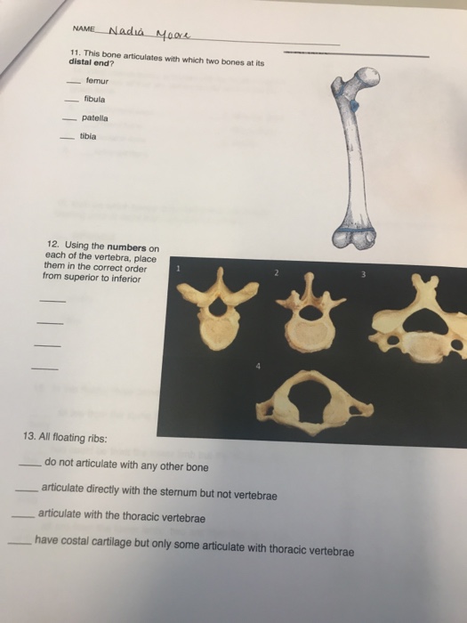 Solved: NAME Nadià Mox 11. This Bone Articulates With Whic... | Chegg.com